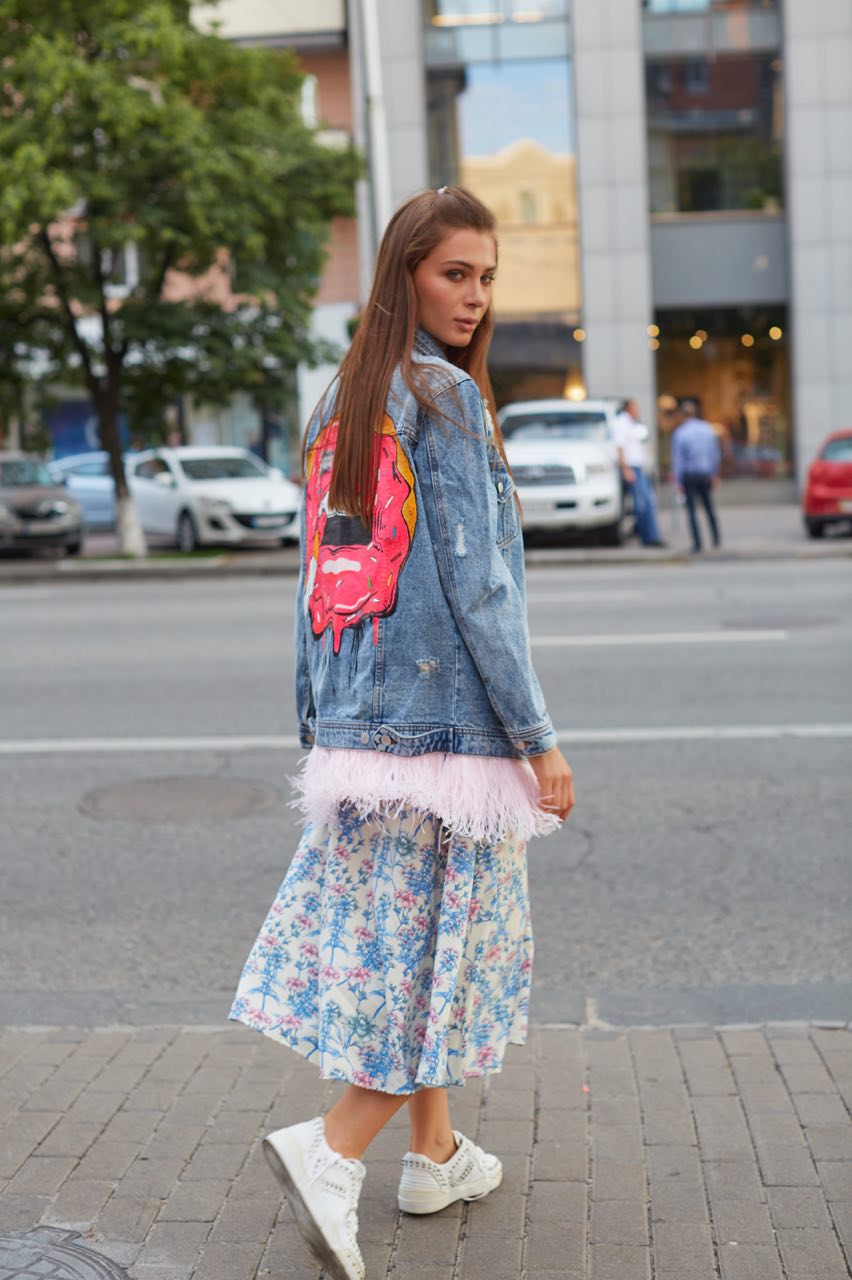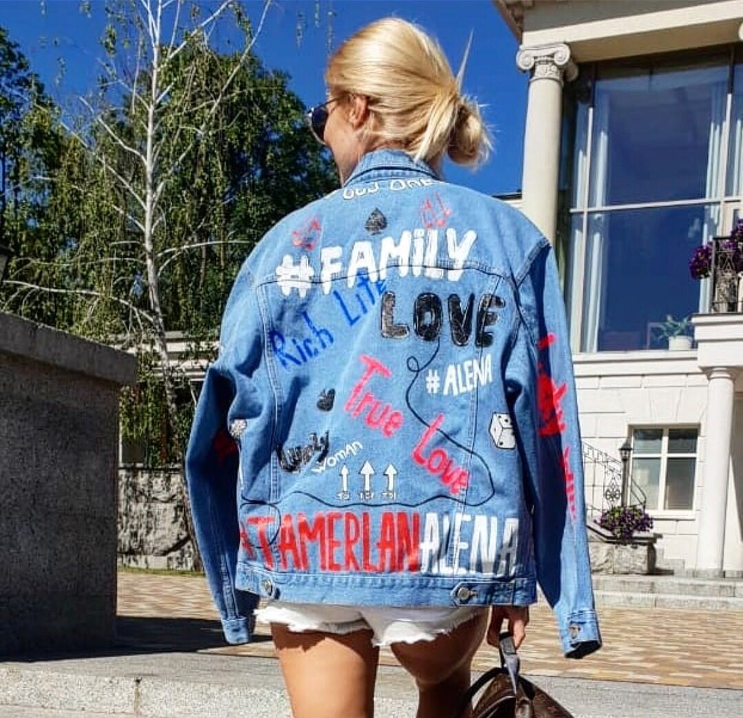 Це, мабуть, наш найулюбленіший пункт :) За рахунок свого базового вигляду джинсова куртка може послужити таким собі полотном для прояву Вашої творчості. Навіть якщо малювання не ваш коник, це не привід опускати руки! Світовим дизайнерам на пару з селебріті сподобався варіант розпису тканини, зроблений навмисне недбало. Простіше кажучи, прикрасити куртку можна словами улюбленої пісні, цитатами або рандомними словами (як це зробив бренд Balenciaga). Для цього знадобиться маркер для малювання на тканині або акрилові фарби. Як результат виглядає стильно і вимагає мінімальних витрат часу та грошей.