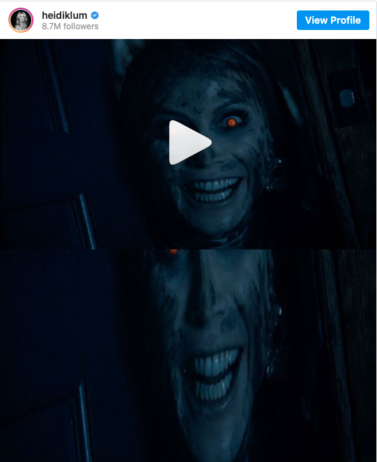 А Хайді Клум, замість того щоб влаштовувати щорічну вечірку, побажала всім безпечних, моторошних вихідних і виставила в мережу короткометражку-привітання для всіх своїх передплатників в Інстаграм.