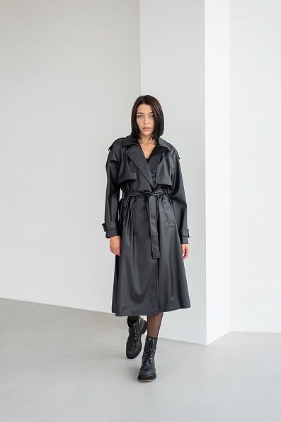1. Чорний тренч з еко-шкіри від MBocharova.