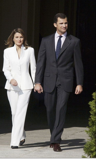 Летиція Ортіс недалеко пішла від своїх “колег”. Будучи успішним журналістом, вона не втратила своїх здібностей, навіть вийшовши заміж за іспанського принца. Стиль леді змінювався, але незмінним залишилося одне – любов до брючних костюмів. Навіть на власні заручини вона віддала перевагу романтичному комплекту двійку білого кольору від Armani.