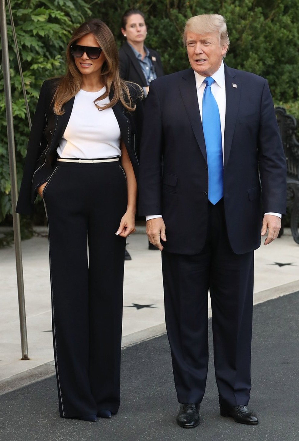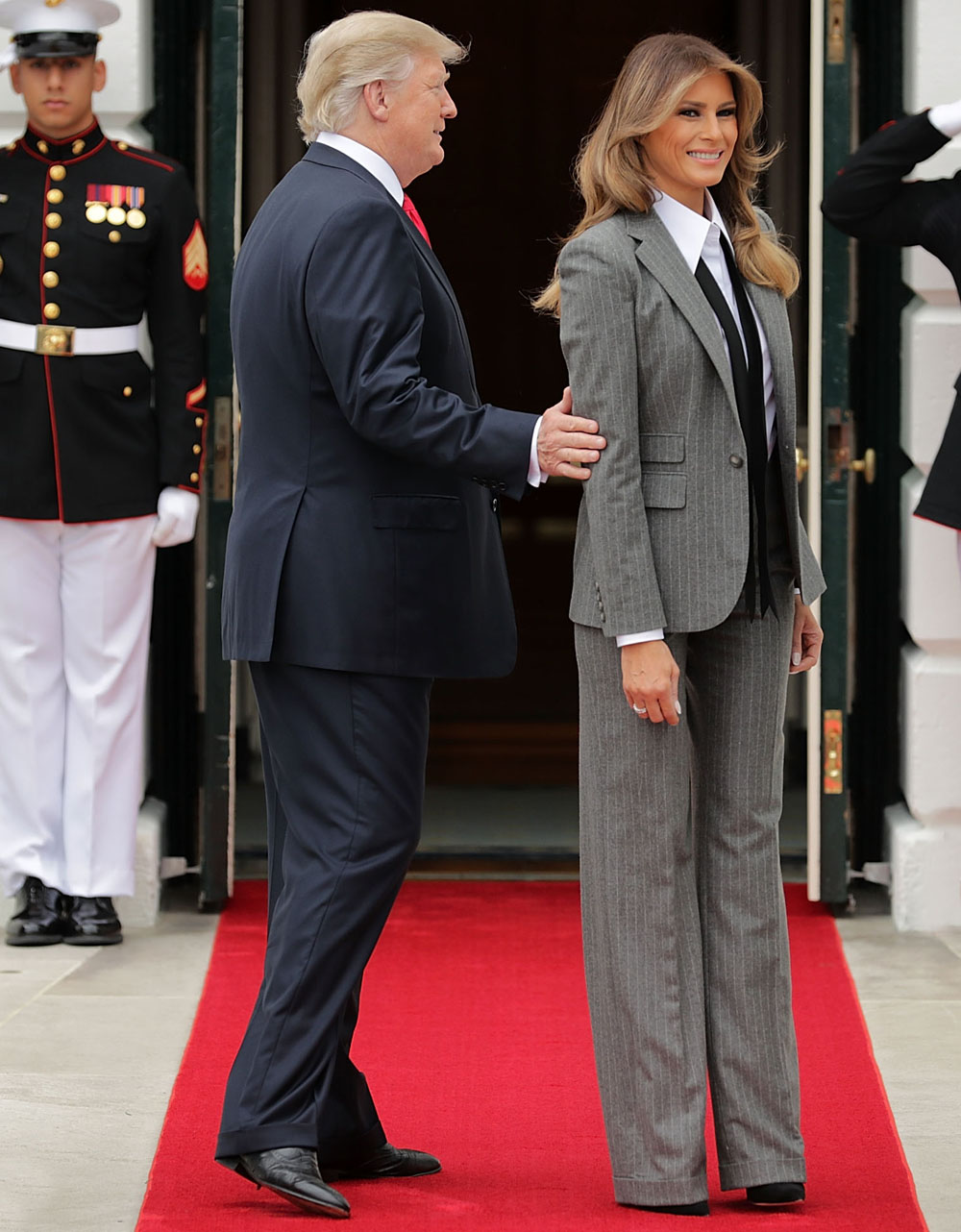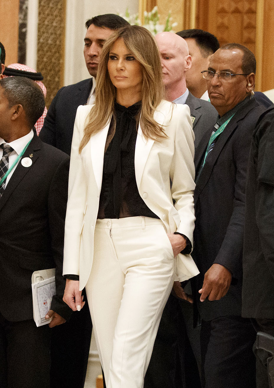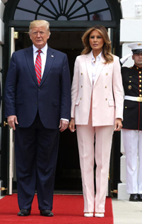 Меланія Трамп стала справжньою сенсацією у світі політики. Адже таких перших леді світ ніколи не знав. Її стиль називають "сувора сексуальність", і не дарма. Те, як Меланія з'являється на заходах, ніколи не залишиться непоміченим. Коли президент США приймав гостей, перша леді вразила всіх своїм вбранням від Calvin Klein. Брючний костюм у ніжно-рожевому відтінку дуже підійшов Меланії, зробивши образ яскравим і доречним. Взагалі, Меланія Трамп дуже любить костюми брюки, тільки подивіться на ці фото!