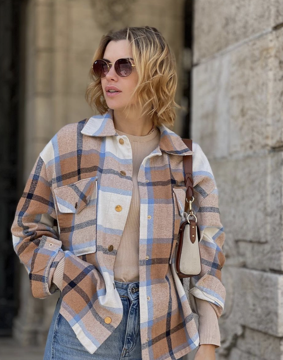 Модний одяг сезону 2021-2021 безумовно має практичність. На вашу увагу, ліворуч на Мілі (@ya_horoshaya_) сорочка в клітку з теплої тканини. На лівому фото, Олена вибрала сорочку з екошкіри.