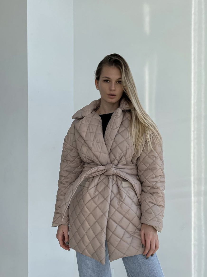 І звичайно ми не змогли залишити поза увагою дівчат, які обрали теплу базу. Два стьобані пуховики різної довжини та квітів, адже серед нашого асортименту кожен може вибрати собі варіант до душі. Ліворуч на Аліні коротке бежеве пальто. Справа на Даші довге пальто на поясі чорного кольору.