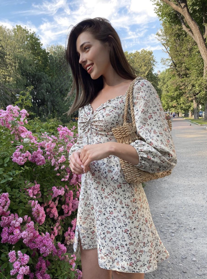 *на фото Дарина у сукні зі складанням у двох принтах від MBocharova.