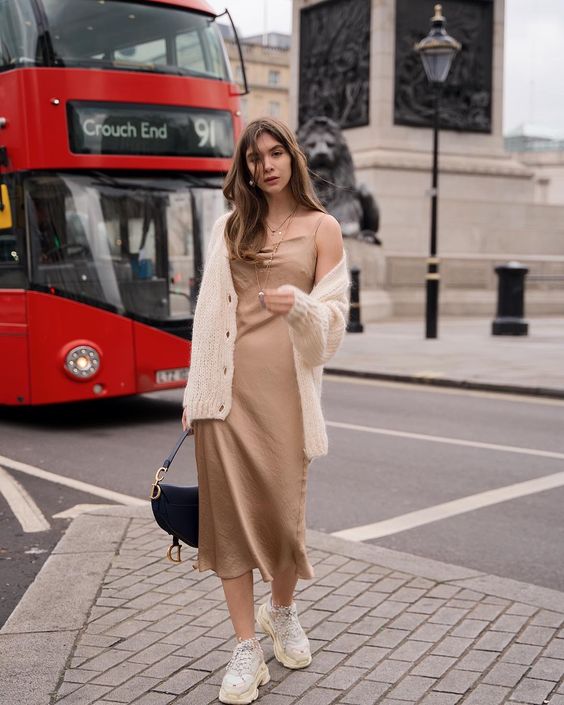 • Шовкова сукня та кросівки